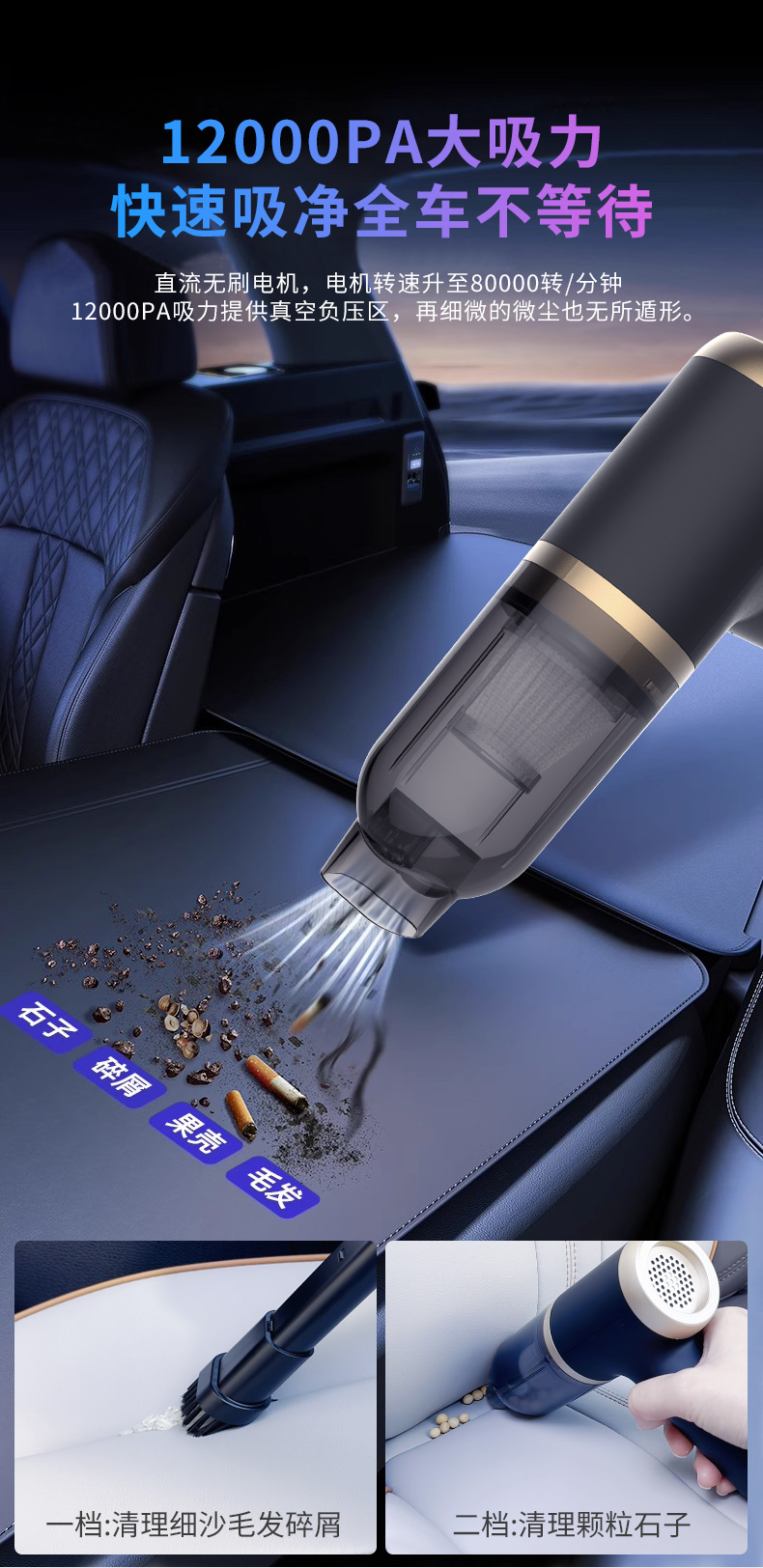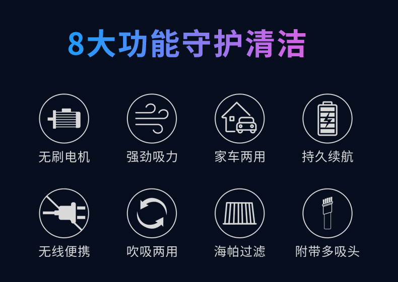 2、吸/吹/抽/充,多功能组合,强劲吸力;