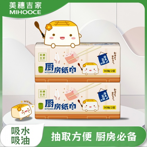 美穗吉家 厨房纸巾 原生竹浆2层90抽*3包