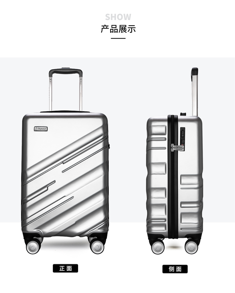 ●产品设计线条时尚,箱体采用ABS+PC材质制作而成,具有抗冲击、 耐磨等优点