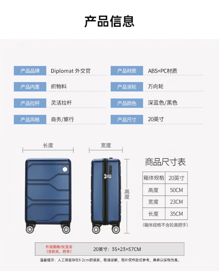 外交官拉杆箱TC-6902(20英寸蓝色,黑色)