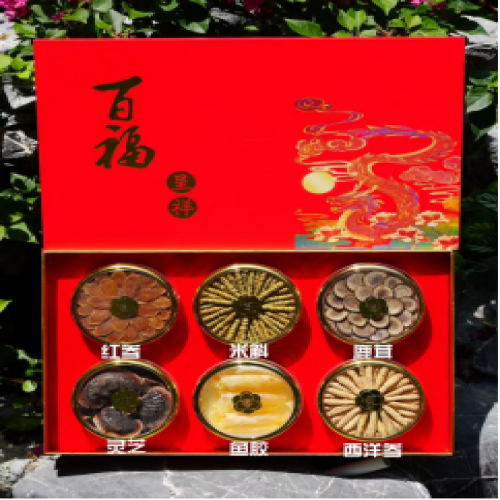 百福呈祥-六拼礼(红参40g 鱼胶3个 西洋参60g 米斛50g 灵芝15g 鹿茸15g)