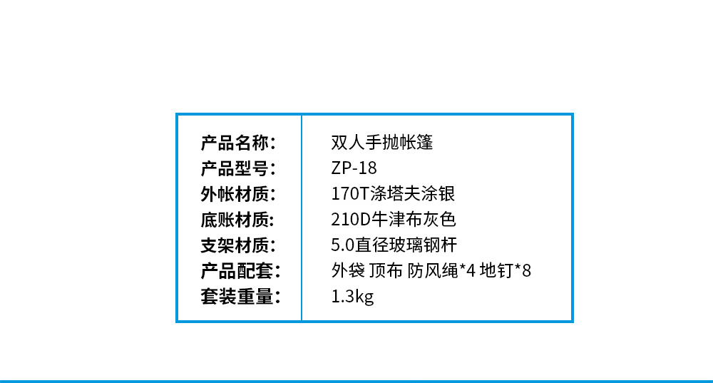 纵贯线双人手抛帐篷ZP-18