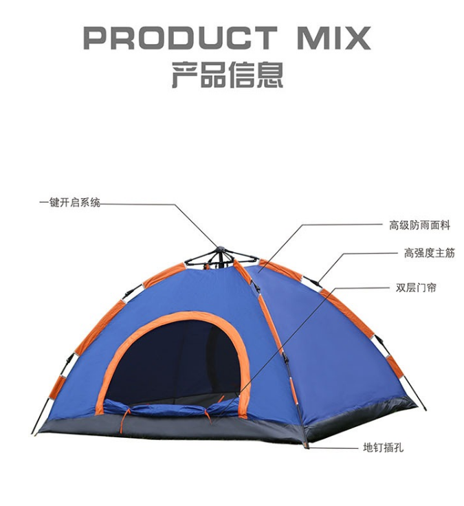 规 格:210*150*125cm 材 质:180T防水银胶布 支 架:全自动杆 配 件:防水拎包、地钉