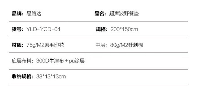 易路达超声波野餐垫|